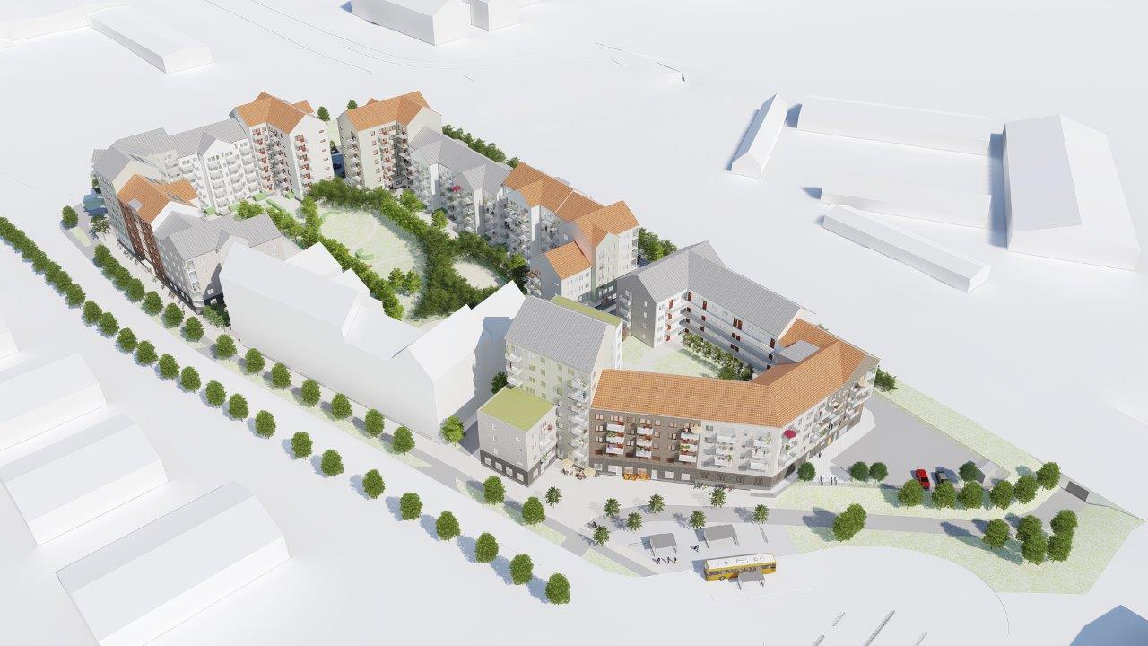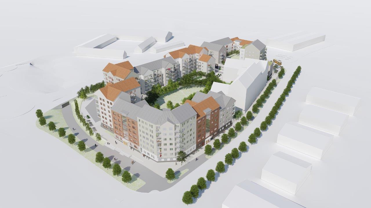 Projektet består av tre kvarter med totalt cirka 460 lägenheter (varav 360 är hyresrätter och 100 är bostadsrätter).