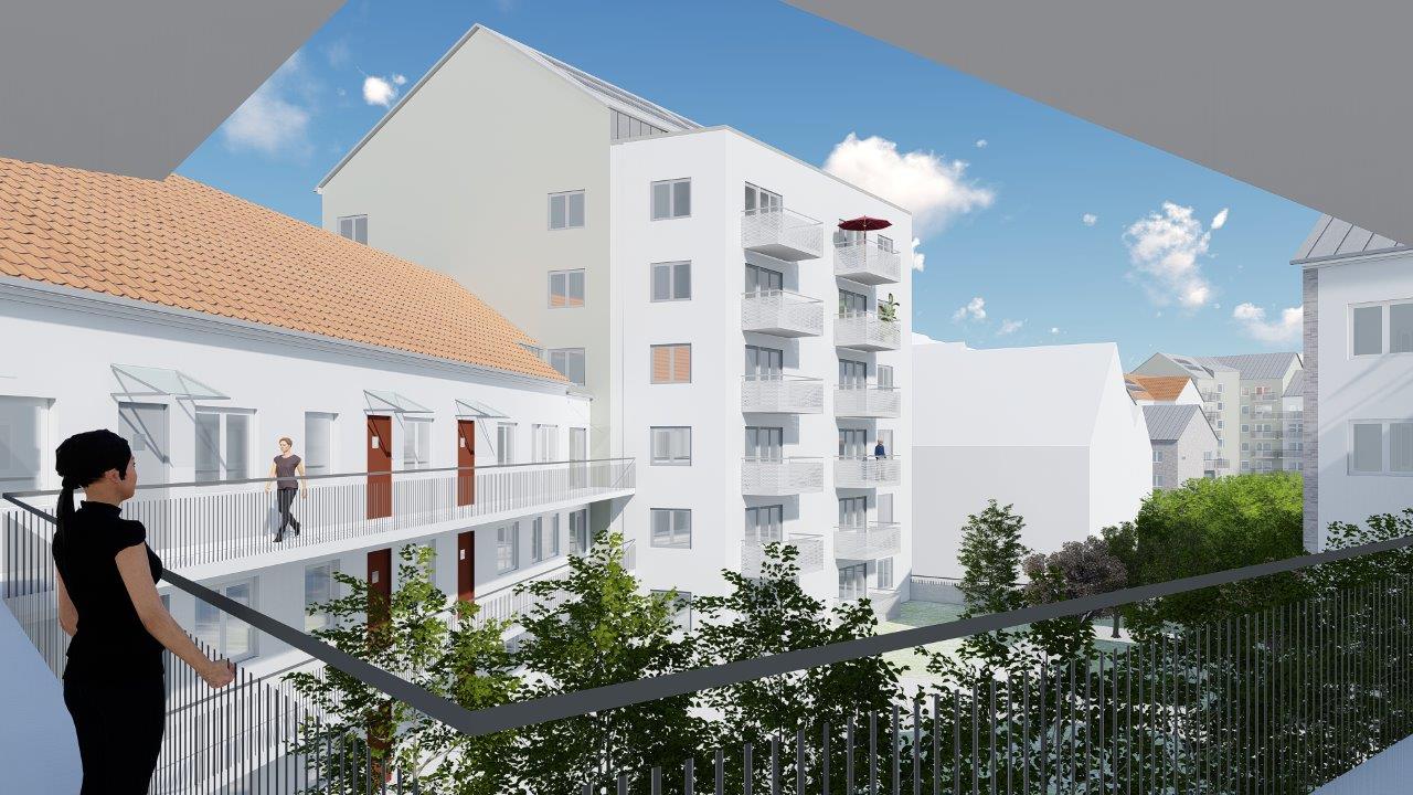 Uppdraget är ett förtätningsprojekt på en tomt i norra Lund, som idag består av övervuxna före detta parkeringsplatser.