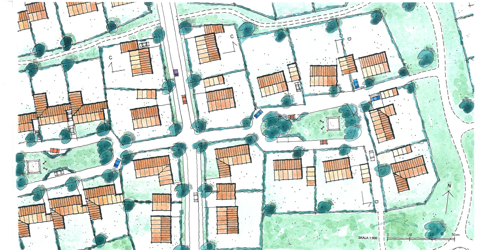 Komplett detaljplan för Stubbarp 32:3 och 33:3 I den skånska slättbygden fanns det före den stora skiftesreformen en gammal bytradition, med kringbyggda gårdar längs en gemensam bygata, som i byns mitt kunde utvidgas till en plats. Med detta som inspiration grupperas bebyggelsen i planområdet i små ”byar” längs ”bygator” och kring en gemensam plats med grönska. Husen placeras så att de skapar tydliga gårds- och gaturum för att uppnå närhet och intimitet. Byarnas samlade gestaltning skall ge en bild av varierat uttryck och skiftande täthet, där varje ”by” tänks få en sammanhållen gestaltning.