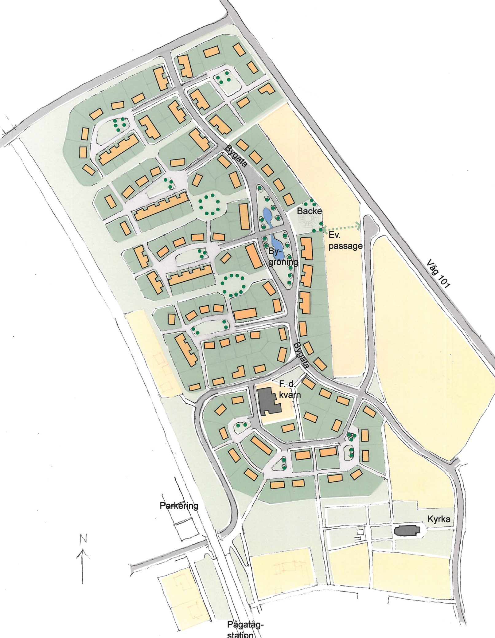 4. Norr om folkhögskolan, mellan gamla byvägen, en vattendamm och väg 101 utbyggs ett mindre, tätt småhusområde.